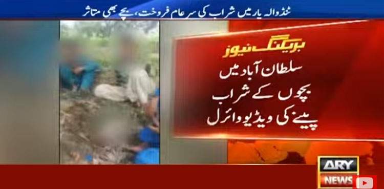 سندھ کے شہر ٹنڈوالہٰیار کے علاقے سلطان آباد میں بچوں کے شراب پینے کی ویڈیو سوشل میڈیا پر وائرل ہوگئی۔