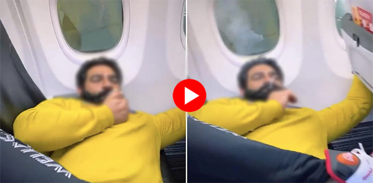 لیکن ایک شخص نے اڑتے طیارے میں سیگریٹ جلا کر مسافروں کی زندگیاں خطرے میں ڈال دیں اور خود مزے سے نشستوں پر لیٹ کر ویڈیوز بنواتا رہا۔