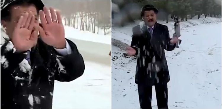 عراقی صوبے کردستان میں موسم کی تبدیلی سے متعلق رپورٹنگ کرنے والے شخص اس وقت ایک تجیب چیلنج کا سامنا کرنا پڑا جب شہریوں نے رپورٹر پر برف کے گولے برسانا شروع کیے۔