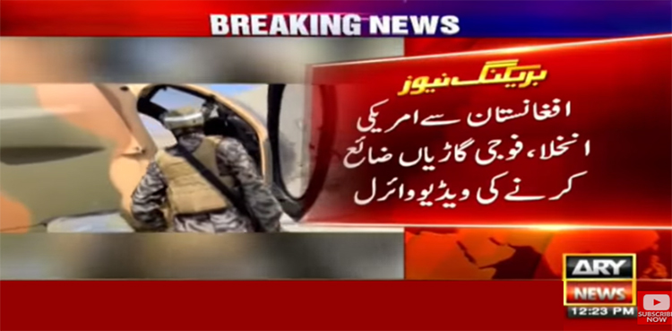 اس حوالے سے ویڈیوز بھی منظرعام پر آئی ہیں جس میں دیکھا جا سکتا ہے کہ فوجی تھوڑ پھوڑ کررہے ہیں۔ امریکا نے جاتے جاتے اس بات کو یقینی بنایا کہ فوجی سامان، ہتھیار اور طیارے طالبان کے لیے ناقابل استعمال ہو جائیں۔