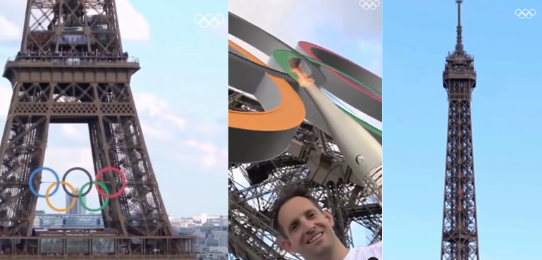 اولمپکس کی روایتی مشعل میزبان شہر پیرس کے مشہور زمانہ ایفل ٹاور پہنچا دی گئی۔ مشعل کو ٹاور کی بالائی منزل پر لے جایا گیا اس سے قبل مشعل کو شہر کے مختلف مقامات لے جایا گیا۔