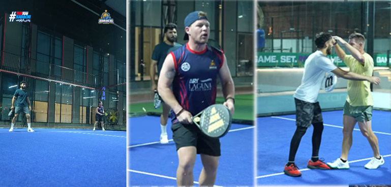 کھلاڑیوں نے کرکٹ کے میدان کے بعد جم کر پیڈل کورٹ میں بھی اپنی مہارت دکھائی اور خوبصورت سروسز کیں۔ کرکٹرز نے پیڈل گیم سے بھرپور انجوائے کیا۔