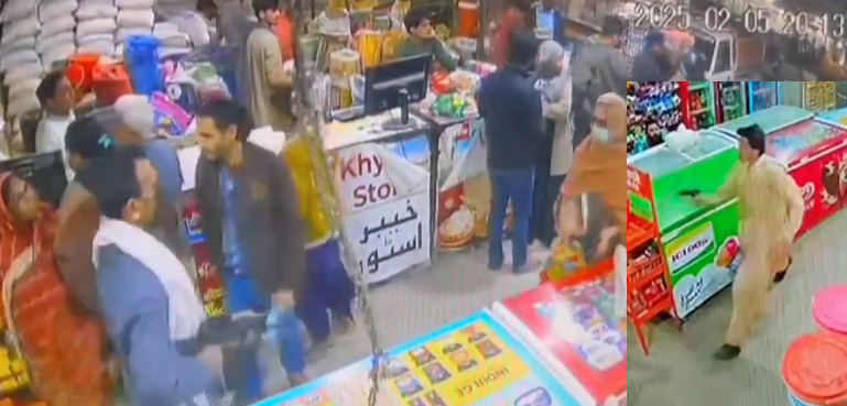 دیدہ دلیر ڈاکو خریداری کے لیے آئے افراد سے بزور اسلحہ موبائل فون اور نقدی لوٹتے ہیں۔ ایک ڈاکو سامان سے کود کر کیش کاؤنٹر کی طرف جاتا ہے اور وہاں سے لاکھوں کا کیش لوٹ لیتا ہے۔