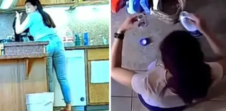 وائرل ہونے والی ایک اور ویڈیو میں وہ پکڑی گئی ہے جب اس نے کچن میں کافی مشین میں بلیچ ڈالا۔