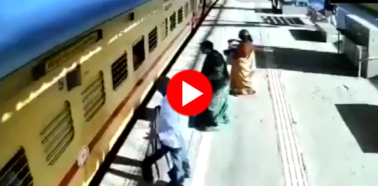 مناظر میں دیکھا گیا کہ خاتون پٹری کی کناری اور چلتی ٹرین کے درمیان پھنسی ہوئی ہیں۔ ساتھی مسافر ضعیف ہونے کے باعث ٹھیک طرح عورت کو سنبھال نہ پایا تاہم اطراف میں موجود دیگر افراد نے مدد کی۔