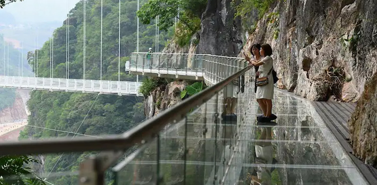 فرانسیسی ساختہ ٹمپرڈ شیشے سے بنے اس حیرت انگیر پل کا نام بیچ لانگ رکھا گیا ہے جس کا ترجمہ "وائٹ ڈریگن” ہے۔ یہ پل نیچے گھاٹی میں ہریالی کا ایک خوبصورت منظر پیش کرتا ہے۔