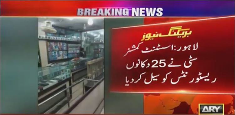 ذرائع کا کہنا ہے کہ انتظامیہ کی جانب سے شلیمار میں 28 دکانوں کو سیل کیا اور 46 ہزار کے جرمانے عائد کیے جبکہ اسسٹنٹ کمشنر سٹی نے 25 دکانوں اور ریسٹورنٹس کو سیل کردیا۔