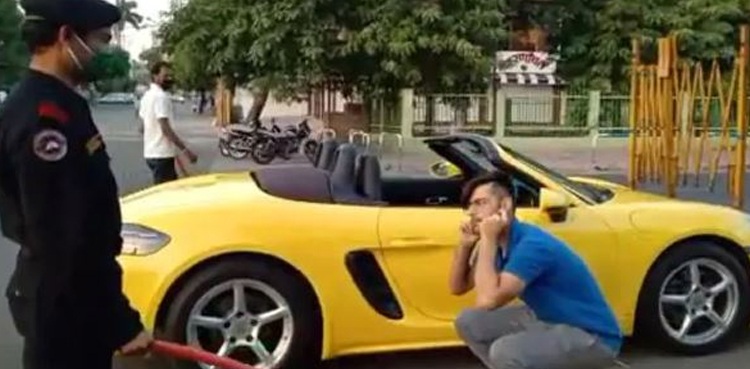 رپورٹ میں کہا گیا ہے کہ یہ واقعہ بھارتی ریاست ادھیا پردیش میں پیش آیا جہاں ایک نوجوان ’پورچھے‘ نامی مہنگی ترین گاڑی میں سڑکوں پر گشت کررہا تھا اس دوران پولیس نے اسے گھیر لیا۔