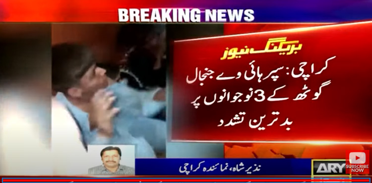 کراچی : سپرہائی وے جنجال گوٹھ کے نہتے3نوجوانوں پربدترین تشدد کا واقعہ پیش آیا ہے جس میں علاقہ مکینوں کی جانب سے عام افراد کو ڈاکو بنانے کی کوشش کی گئی، پولیس نے ویڈیو میں نظر آنے والے 8 ملزمان پکڑ لیے۔