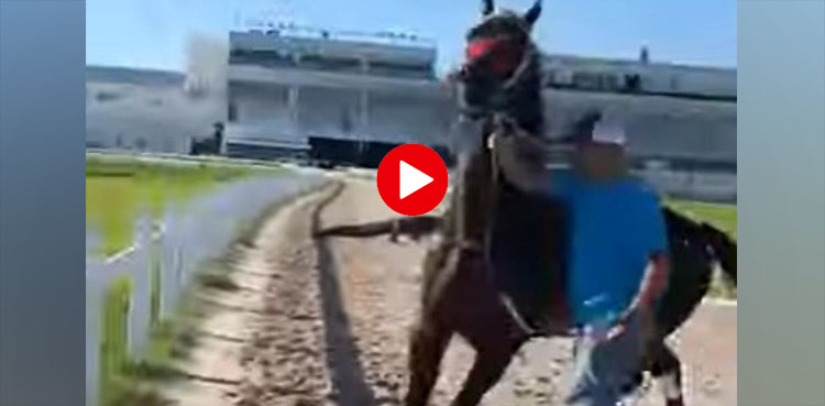 عام طور پر آپ گھوڑوں کی دوڑ کے ٹریک پر گھوڑوں کی توقع کریں گے مچھلیوں کی نہیں اور ریس کی تیاری کرنے والا گھوڑا اس وقت خوف زدہ رہ گیا جب رینگنے والا جانور اچانک سے باہر نکل آیا۔