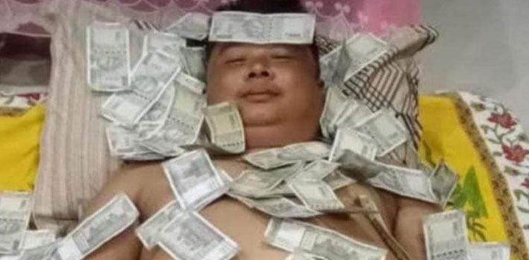 بھارتی میڈیا رپورٹس کے مطابق ریاست آسام کے سیاست دان بینجمن باسوماتری کی کرنسی نوٹوں کے ساتھ سونے کی تصویر وائرل ہورہی ہے جبکہ ان کے قریب بھی کچھ نوٹ بکھرے ہوئے ہیں۔