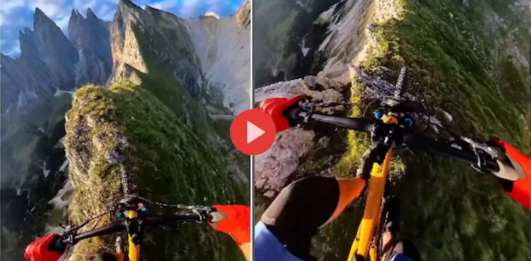 وائرل کلپ باسوٹ کو ڈولومائٹ پہاڑی سلسلے میں خطرناک حڈ تک تنگ چوٹی پر نیویگیٹ کرتے ہوئے دکھایا گیا ہے، بائیکر نے دشوار گزار راستے پر سائیکل چلاتے ہوئے توازن برقرار رکھا۔