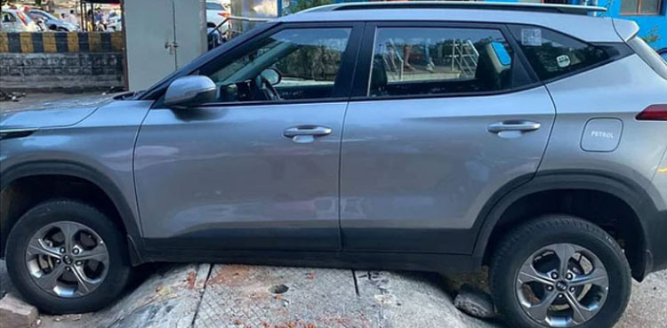 گاڑی کے مالک نے سماجی رابطے کی ویب سائٹ ٹویٹر پر کار کی تصویر شیئر کی اور بتایا کہ پارکنگ نمبر 10 کے قریب اسپیڈ بریکر پر ان کی گاڑی پھنس گئی۔