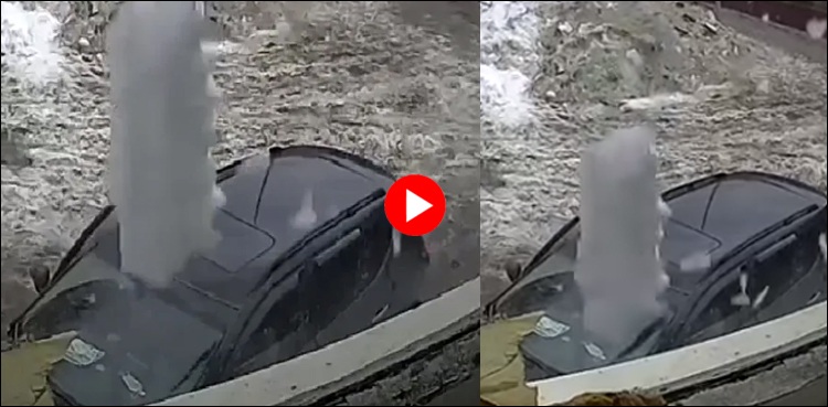 روس کے شہر میں پیش آنے والے واقعے کی ویڈیو میں دیکھا جاسکتا ہے کہ ایک جوڑے نے سڑک کنارے گاڑی کھڑی کی تو اُسی لمحے اوپر سے ایک بڑا برف کا ٹکڑا گاڑی کے اگلے حصے پر آکر گرا۔ یہ برف کا ٹکڑا پچاس فٹ کا تھا، جس کی وجہ سے گاڑی کا اگلا شیشہ ٹوٹ گیا جبکہ دھماکے کی آواز بھی آئی۔