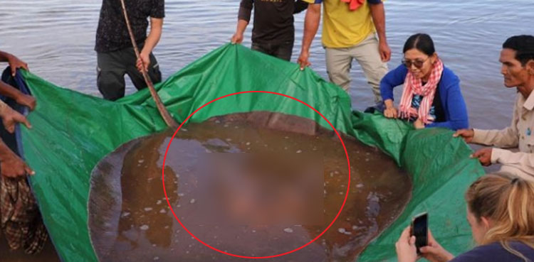کمبوڈین ماہی گیر اس وقت دنگ رہ گئے جب انہوں نے حادثاتی طور پر دریائے میکانگ میں تازہ پانی کی اسٹرنگ رے مچھلی پکڑلی جس کی ویڈیو سوشل میڈیا پر وائرل ہوگئی۔