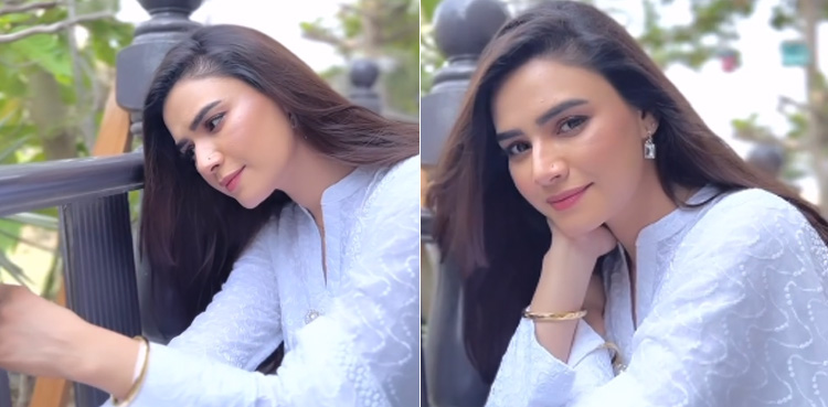 کرن حق کی جانب سے جو ویڈیو شیئر کی گئی ہے اس میں انہوں نے سفید رنگ کا لباس زیب تن کیا ہوا ہے، جبکہ پس منظر میں ہریالی نظر آرہی ہے۔