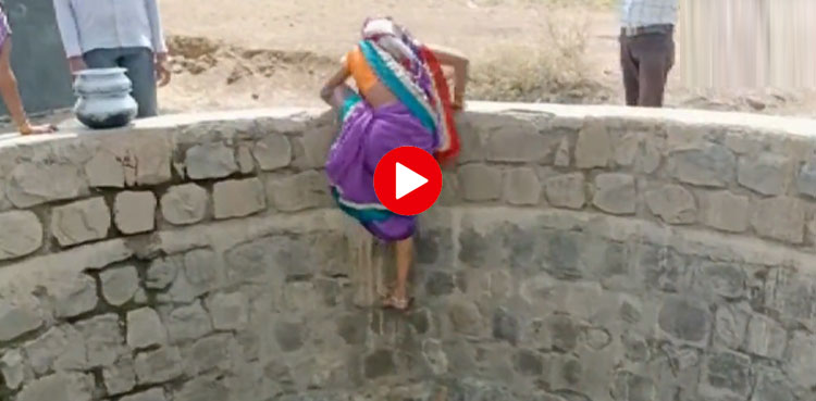 بھارت میں ایک ویڈیو وائرل ہوئی ہے جس میں ایک خاتون کو پانی کے حصول کے لیے کنویں کی دیوار پر چڑھتے ہوئے دکھایا گیا ہے۔