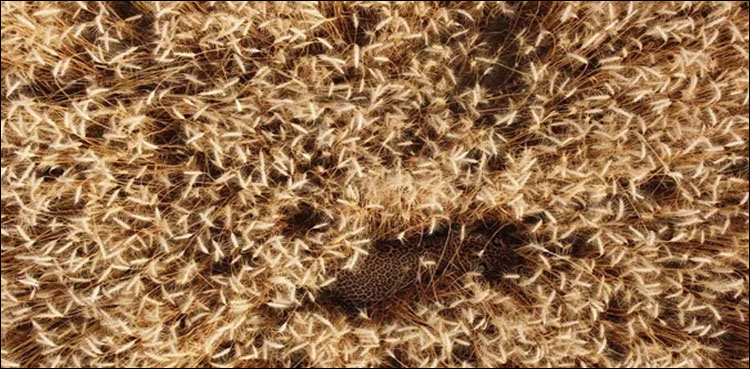 تصویر میں دیکھا جاسکتا ہے کہ ایک چیتا زرعی میدان میں چھپا ہوا ہے، چیتا اس طرح چھپا ہے کہ صارفین تصویر کو بار بار دیکھ کر بھی نہیں سمجھ سکے۔