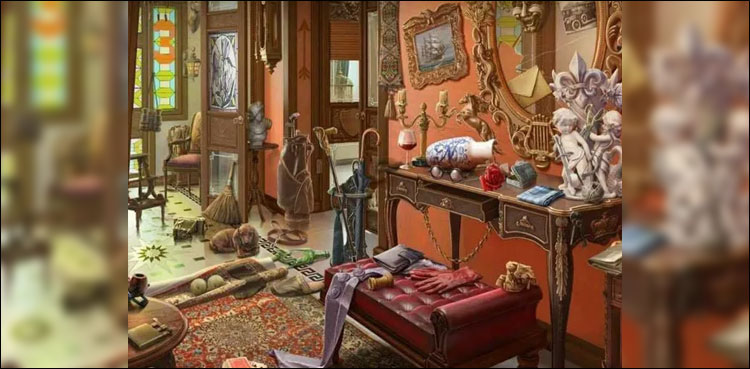 اگر نہیں تو غور سے دیکھیں کمرے کے دروازے کے ساتھ بلی بیٹھی ہوئی ہے جو دراصل آگے چھتری رکھی ہونے کی وجہ سے چھپ گئی اور ایک معمہ بن گئی۔