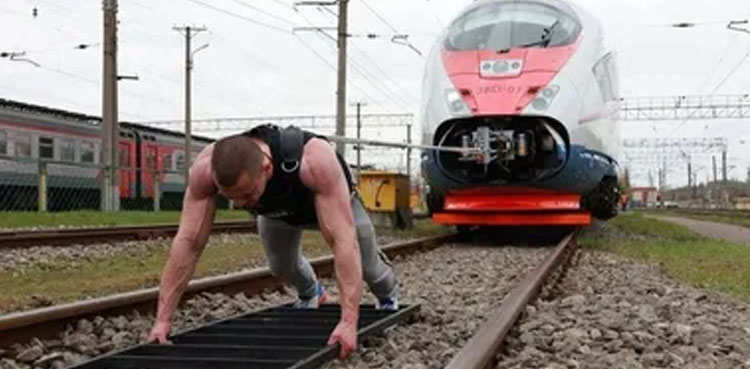 روس میں ایتھلیٹ نے حیران کن طور پر 650 ٹن وزنی ٹرین کھینچ کر عالمی ریکارڈ بنادیا۔