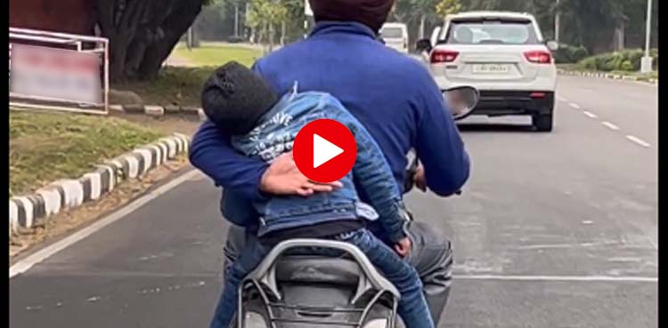 وائرل ویڈیو میں دیکھا جاسکتا ہے کہ والد بچے کو موٹر سائیکل پر لے جارہے ہیں اسی اثنا میں بیٹا نیند کی آغوش میں چلا جاتا ہے جب انہیں اس بات کا احساس ہوتا ہے تو وہ اپنے لخت جگر کو ایک ساتھ سے سہارا دیتے ہیں۔