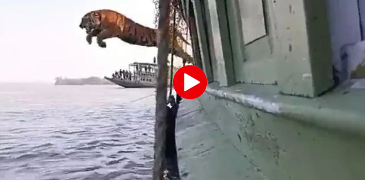 انٹرنیٹ پروائرل ہونے والی ویڈیو میں چیتے کو اچانک کشتی سے دریا میں چھلانگ مارتے دیکھا جاسکتا ہے۔