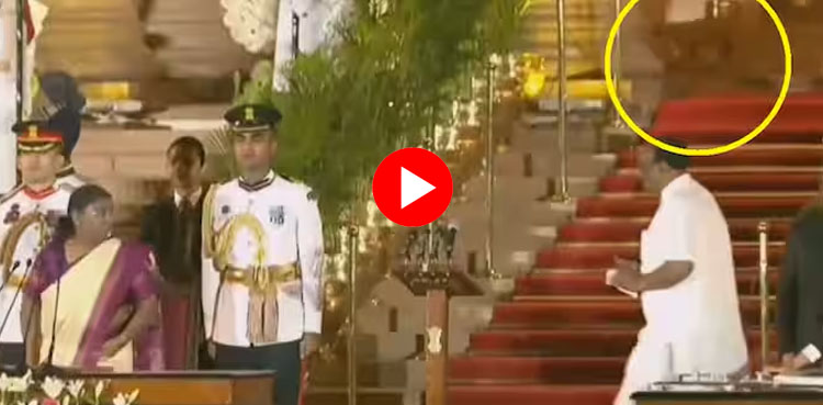 وائرل ویڈیو میں دیکھا جاسکتا ہے کہ درگا داس کے حلف لینے کے بعد راشٹر پتی بھون میں عجیب و غریب چیز نظر آرہی ہے۔