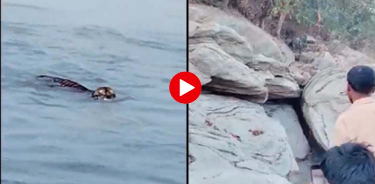 بھارت کے شہر گوہاٹی کے دریا میں بنگال ٹائیگر کی تیراکی کرنے کی ویڈیو سوشل میڈیا پر وائرل ہوئی جبکہ اسے دیکھ کر شہریوں میں خوف و ہراس پھیل گیا۔