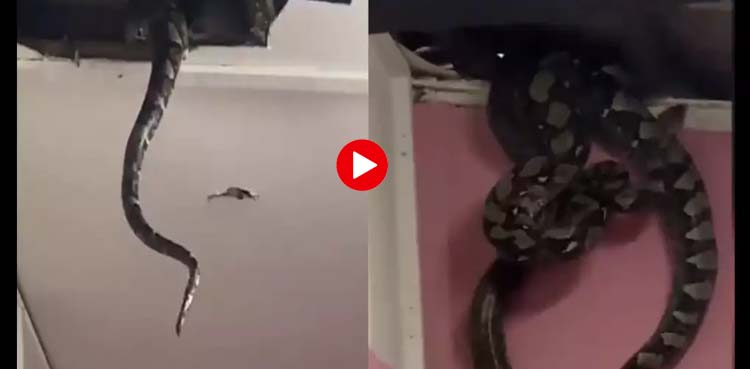 ملائیشیا میں تین دیوہیکل سانپوں کی گھر کی چھت سے گرنے کی ویڈیو سوشل میڈیا پر وائرل ہوگئی۔