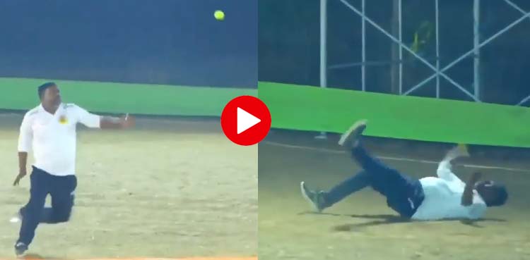بھارت میں ٹینس کرکٹ میچ کے دوران کھلاڑی سلپ میں فیلڈنگ کررہا ہوتا ہے اور اسی دوران ایج لگ کر گیند اس کی جانب سے جاتی ہے۔