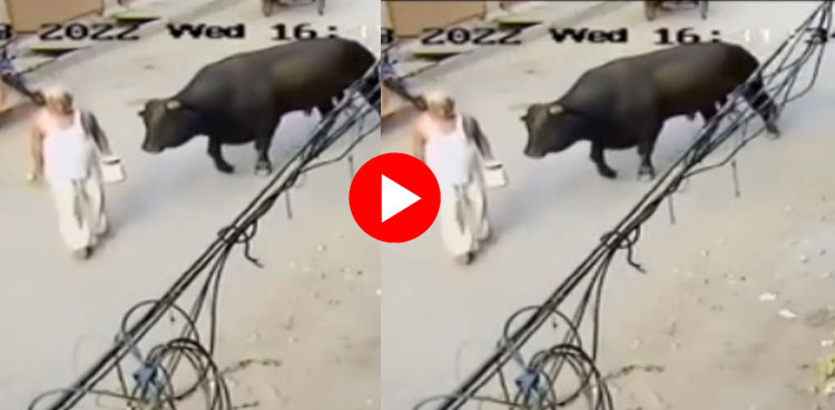 بھارتی دارالحکومت نئی دہلی سے ایک ویڈیو وائرل ہورہی ہے جس میں بیل نے معمر شخص کو اٹھا کر پھینک دیا۔