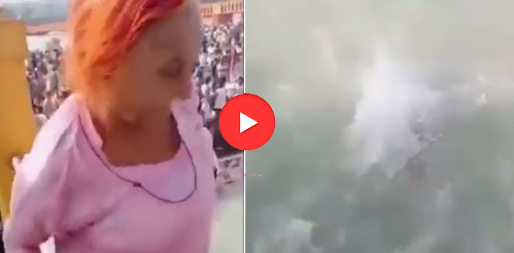 بھارت میں معمر خاتون کی دریا میں چھلانگ لگانے کی ویڈیو سوشل میڈیا پر وائرل ہوگئی۔