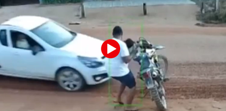 والد نے جیسے ہی کار کی طرف دیکھا تو پلک جھپکتے ہی اپنے بیٹے کو موٹر سائیکل اٹھا لیا۔