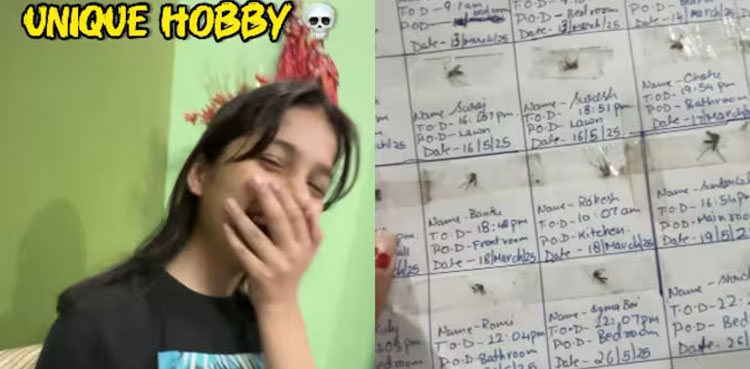 بھارت میں لڑکی کی ویڈیو وائرل ہورہی ہے جو انوکھا مشغلہ رکھتی ہے جس میں وہ مچھروں کو مارتی ہے اور اس کا ٹریک ریکارڈ بھی رکھتی ہے۔