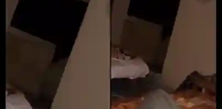 سوشل میڈیا پر ویڈیو شیئر کی گئی جو وائرل ہوگئی، فوٹیج میں دوستوں کو ’رونے کی آوازوں‘ سے متعلق پتا لگانے کی کوشش کرتے ہوئے دکھایا گیا ہے جو مبینہ طور پر رات کے 3 بجکر 28 منٹ پر ہوٹل میں سن رہے تھے جس میں وہ ٹھہرے ہوئے تھے۔