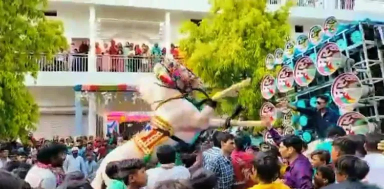 بھارتی میڈیا کے مطابق یہ واقعہ ریاست اترپردیش کے علاقے ہمیر پور میں پیش آیا ہے جہاں شادی کی تقریب کے دوران گھوڑا بدک گیا، جس کے نتیجے میں آس پاس کھڑے کئی باراتی زخمی ہوگئے، خوش قسمتی سے واقعے میں کوئی جانی نقصان نہیں ہوا۔
