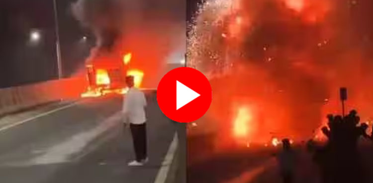 بھارتی میڈیا رپورٹس کے مطابق حادثے کی ویڈیو سوشل میڈیا پر وائرل ہوگئی، جس میں دیکھا جاسکتا ہے کہ ایمبولینس میں آگ لگی ہوئی ہے اور شعلے کئی فٹ بلندی تک بلند ہورہے ہیں۔