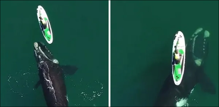 غیر ملکی خبر رساں ایجنسی کے مطابق میکسی جونز نامی فوٹو گرافر نے سوشل میڈیا پر ایک ڈرون فوٹیج شیئر کی جس میں ایک چھوٹی کشتی کے نیچے دیوہیکل وہیل کو تیرتے دیکھا جاسکتا ہے۔