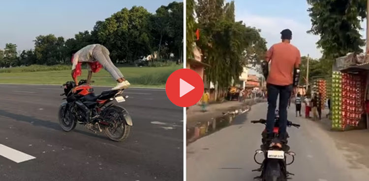 بھارتی ریاست بہار سے ایک ایسی ہی ویڈیو سامنے آئی ہیں جس میں نوجوان کو موٹر سائیکل پر پش اپس لگاتے دیکھا جاسکتا ہے تاہم صارفین کی شکایت پر پولیس نے اس کے خلاف ایکشن لے لیا ہے۔