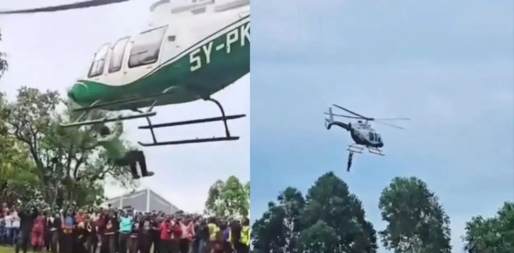 کینیا میں عجیب و غیب واقعے میں شہری ہیلی کاپٹر سے لٹک گیا جس کی ویڈیو سوشل میڈیا پر وائرل ہوگئی۔