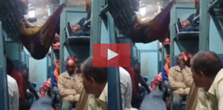 انٹرنیٹ پر وائرل مناظر میں دیکھا جاسکا ہے کہ کس طرح مسافر نے چادر کی مدد سے اپنے لیے بیٹھنے اور لیٹنے کے لیے جگہ بنائی، شہری نے کپڑے کے کونوں کو ٹرین کے دونوں اطراف مضبوطی سے باندھ دیا۔