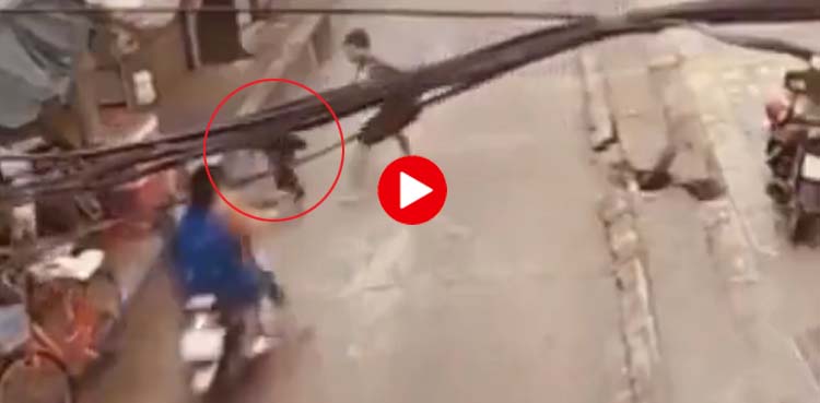 وائرل ویڈیو میں دیکھا جاسکتا ہے کہ تنگ گلی میں لوگ پیدل چل رہے ہیں اور موٹر سائیکل سوار بھی گزر رہے ہیں۔