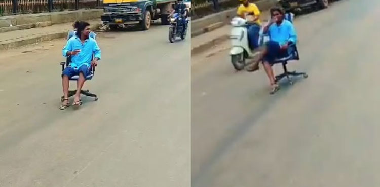 وائرل کلپ میں دکھایا گیا ہے کہ وہ شخص مصروف سڑک کے بیچ میں پلاسٹک کی کرسی پر سکون سے بیتھا چائے پی رہا ہے جیسے یہ کوئی گھر کا کمرہ ہو۔