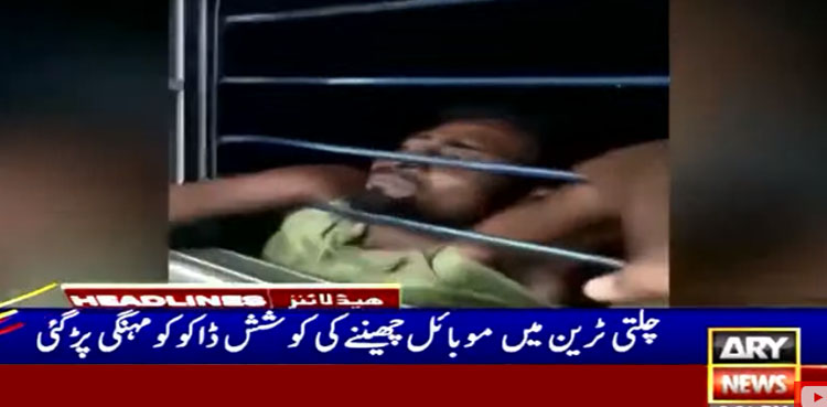 ڈاکو نے چلتی ٹرین میں موبائل فون چھیننے کی کوشش کی تو مسافر نے اس کا بازو پکڑ کر 15 کلو میٹر تک اسے کھڑکی سے لٹکائے رکھا۔