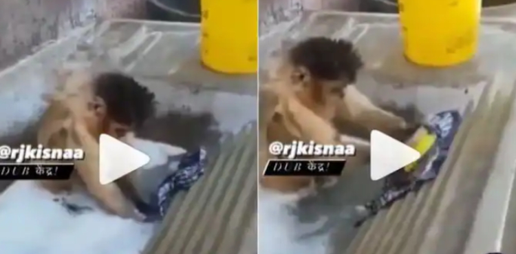 کپڑے دھونے کا کام خواتین اور مرد دنوں کرتے دکھائی دیتے ہیں مگر سوشل میڈیا پر ایک ایسی حیران کن ویدیو تیزی سے وائرل ہورہی ہے جس میں ایک بندر کو کپڑے دھوتے دیکھا جاسکتا ہے۔