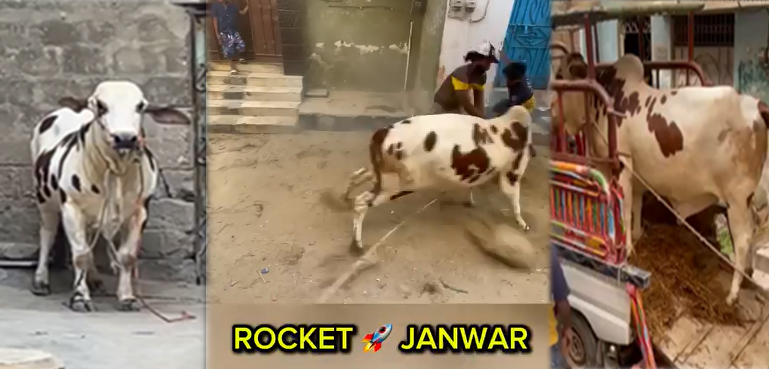 عیدالاضحیٰ میں ایک روز باقی ہے لوگ شوق سے جانور خرید کر لا رہے ہیں راکٹ نامی بیل گھر پر اترتے ہی راکٹ کی طرح اُڑ (بھاگ) گیا۔