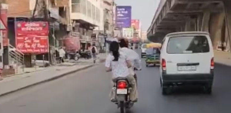 بھارت میں بیوی نے چلتی موٹر سائیکل پر شوہر کی چپل سے پٹائی کردی جس کی ویڈیو سوشل میڈیا پر وائرل ہوگئی۔