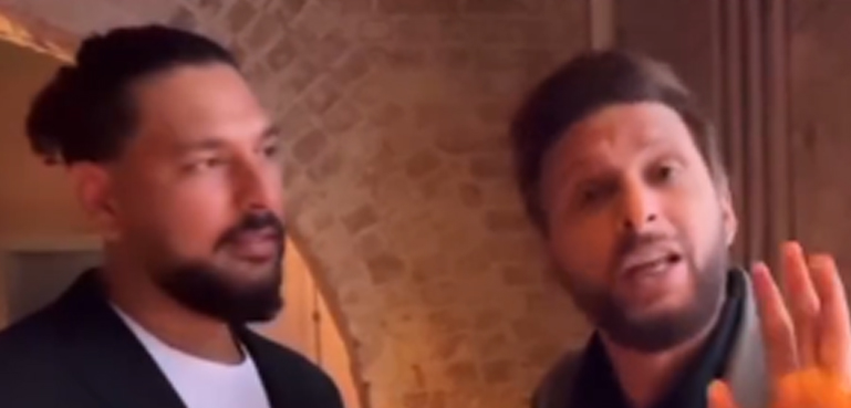 شاہد آفریدی کی جانب سے پوسٹ کی گئی ویڈیو میں دیکھا جا سکتا ہے کہ شاہد آفریدی کا منہ اترا ہوا ہے کہ یووراج سنگھ ان کے پاس آ کر اداسی کا سبب پوچھتے ہیں۔