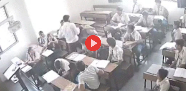 ویڈیو میں دوسرے طالب علموں کو اپنی جگہ پر خاموشی سے بیٹھے دیکھا جاسکتا ہے۔