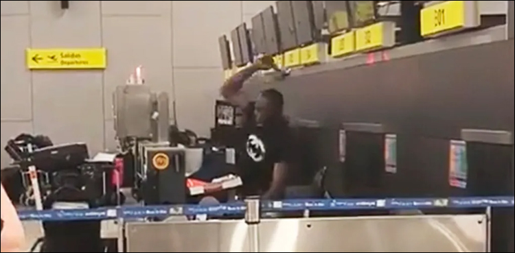 وائرل ویڈیو: مسافر نے ہتھوڑا اٹھا کر امریکی ایئرلائن کا کاؤنٹر تہس نہس کر ڈالا